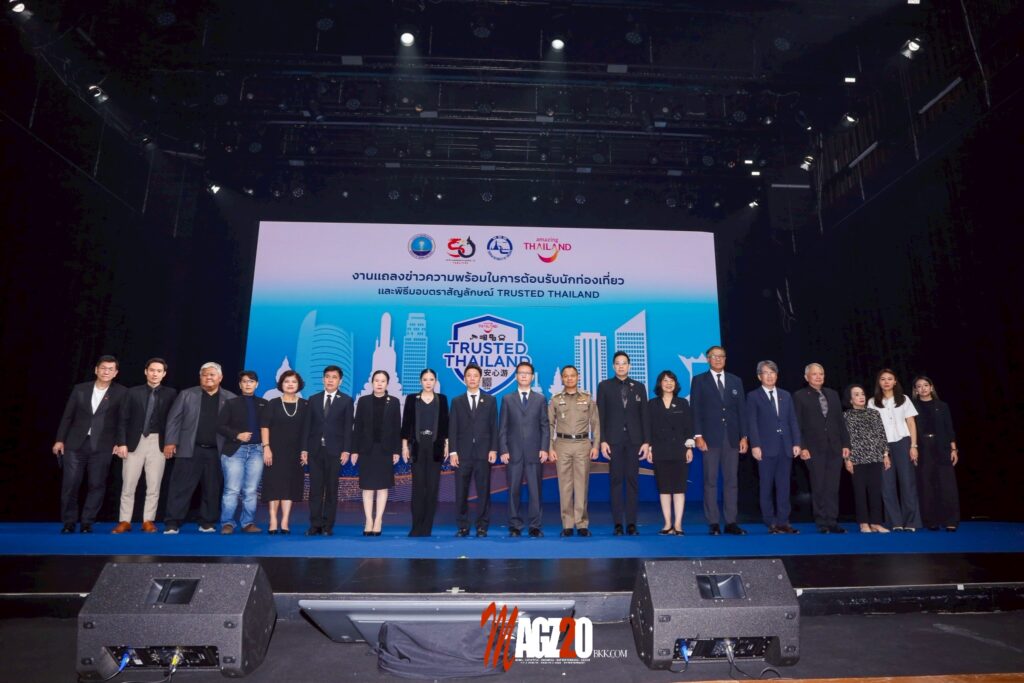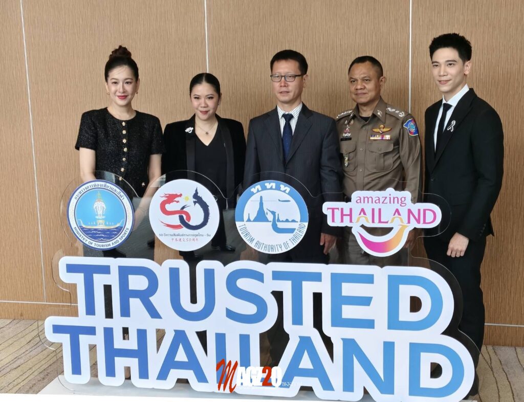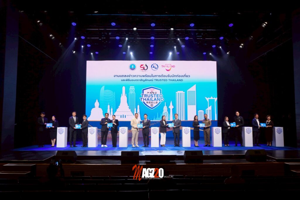 นายอรรถกร ศิริลัทธยากร รัฐมนตรีว่าการกระทรวงการท่องเที่ยวและกีฬา นายหยาง เสี่ยวหลง ที่ปรึกษาแผนกวัฒนธรรม สถานเอกอัครราชทูตสาธารณรัฐประชาชนจีนประจำประเทศไทย และนางสาวฐาปนีย์ เกียรติไพบูลย์ ผู้ว่าการการท่องเที่ยวแห่งประเทศไทย (ททท.) ผนึกกำลังหน่วยงานพันธมิตร อาทิ กรมการท่องเที่ยว กรมอุทยานแห่งชาติ สัตว์ป่า และพันธุ์พืช กรมอนามัย ตำรวจท่องเที่ยว สภาอุตสาหกรรมท่องเที่ยวประเทศไทย สมาคมโรงแรมไทย หอการค้าไทย สมาคมผู้ค้าปลีกไทย สมาคมผู้ประกอบ วิสาหกิจในย่านราชประสงค์ สมาคมสวนสนุกแลผะสวนพักผ่อนหย่อนใจ บริษัท Trip.com (ประเทศไทย) บริษัท อโก้ดา เซอร์วิสเซส จำกัด บริษัท แกร็บแท๊กซี่ (ประเทศไทย) จำกัด ฯลฯ ร่วมแถลงข่าวความพร้อมต้อนรับนักท่องเที่ยวและมอบตราสัญลักษณ์ “Trusted Thailand” ให้กับสถานประกอบการที่เข้าร่วมโครงการ เพื่อรับรองมาตรฐานคุณภาพด้านความปลอดภัยและสร้างความเชื่อมั่นในการเดินทางให้กับนักท่องเที่ยวทั่วโลก