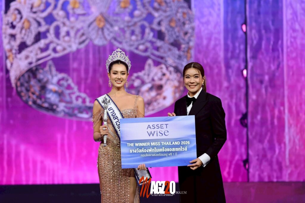เรียกเสียงฮือฮาสนั่นวงการนางงามอีกครั้ง เมื่อ แอสเซทไวส์ นำโดยบอสสาว นางสาวพชร ประพันธ์วัฒนะ กรรมการผู้จัดการอาวุโส กลุ่มธุรกิจอสังหาริมทรัพย์คอนโดมิเนียม บริษัท แอสเซทไวส์ จำกัด (มหาชน) ขึ้นเวทีร่วมยินดีกับมายมิ้นต์-จิราภรณ์ ศาลาแดง นางสาวไทย ประจำปี 2569 และรองทั้ง 4 ได้แก่ จีน-ฤชาทร กิตติพรพานิช, ฝ้าย-ปวีณา เนียมรักษา, เนอฟ-ณัฐวดี กาญจนโอภาษ และ กล้วย-รุ่งระวี ฉิมชาญเวช งานนี้ทีมผู้บริหารไม่ได้มามือเปล่า แต่จัดหนักด้วยรางวัลสุดว้าว มอบรางวัลคอนโดมิเนียมพร้อมอยู่สำหรับพักอาศัยฟรี 1 ปี พร้อมต้อนรับเข้าสู่ AssetWise Family แบบสมศักดิ์ศรี สวยจบครบเครื่อง!