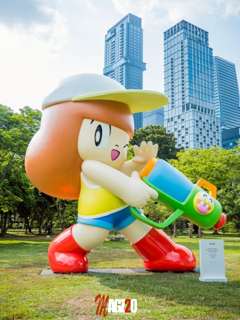 ๐โซนประติมากรรม (Sculpture) 3 มิติขนาดใหญ่ จัดแสดงระหว่างวันที่ 11-30 เมษายน 2569 กับผลงานประติมากรรมขนาดใหญ่จำนวน 6 ชิ้นของศิลปินไทยเอกลักษณ์เฉพาะตัว อาทิ นิสา ศรีคำดี ผู้สร้างสรรค์คาแรกเตอร์ CRYBABY, วิศุทธิ์ พรนิมิต คาแรกเตอร์ Mamuang, เกษมวิทย์ ชวีวัฒน์ เจ้าของคาแรกเตอร์ POORBOY, สิรินาถ สายประสาท คาแรกเตอร์ TOMATO TWINS และ 2CHOEY เชิดศักดิ์ เม้ยขันหมาก กับคาแรกเตอร์อันเป็นเอกลักษณ์ “หน้านิ้วมือ” จัดวางเป็นจุดแลนด์มาร์กสำคัญภายในพื้นที่ เพื่อสร้างการจดจำและเป็นจุดถ่ายภาพสำหรับผู้เข้าชม พร้อมเปลี่ยนพื้นที่สวนลุมพินีให้กลายเป็นมุมเช็กอินแลนด์มาร์กศิลปะแห่งใหม่ของกรุงเทพฯ