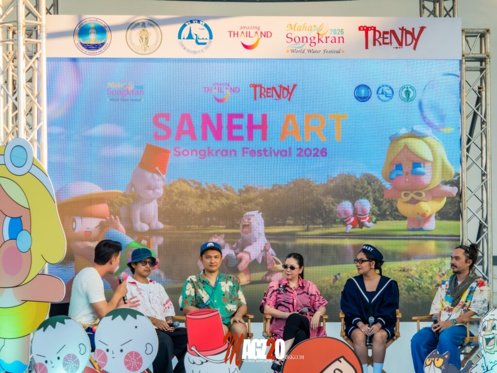 พิธีเปิดงาน “Saneh Art by Songkran Festival 2026” ณ สวนลุมพินี (ลานบันเทิง) ได้รับเกียรติจาก นางสาวฐาปนีย์ เกียรติไพบูลย์ ผู้ว่าการ ททท., นายชัชชาติ สิทธิพันธุ์ ผู้ว่าราชการกรุงเทพมหานคร, นายณรงค์ เรืองศรี ปลัดกรุงเทพมหานคร, นายณัฐ ครุฑสูตร รองผู้ว่าการด้านสินค้าและธุรกิจท่องเที่ยว ททท. ตลอดจนพันธมิตรภาคส่วนต่างๆ ร่วมเปิดงานอย่างเป็นทางการ พร้อมกันนี้ยังมีการเสวนา โดยเหล่าศิลปินและครีเอเตอร์เจ้าของคาแรกเตอร์ชื่อดัง ได้แก่ น.ส.ดอกอ้อ ใจตั้ง Trendy Gallery,นายวิศุทธิ์ พรนิมิตร คาแรกเตอร์ Mamuang, นายเชิดศักดิ์ เม้ยขันหมาก 2CHOEY คาแรกเตอร์ “หน้านื้วมือ”นายเกษมวิทย์ ชวีวัฒน์ เคาแรกเตอร์ POORBOY, น.ส.สิรินาถ ไสประเสริฐ คาแรกเตอร์ TOMATO TWINS และ น.ส.นิสา ศรีคำดี เจ้าของคาแรกเตอร์ Crybaby มาแลกเปลี่ยนมุมมองถ่ายทอดแรงบันดาลใจในผลงาน